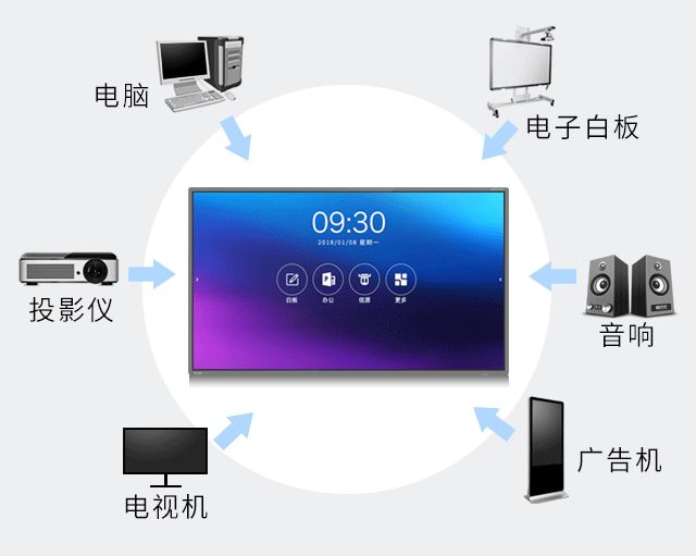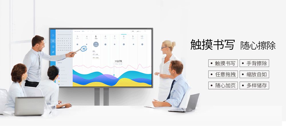 小型会议室,空间有限,但是往往会议设备摆放却是很多。比如像电子白板、投影仪+幕布等会议设备,让会议室更显拥挤,给人压抑的感觉。皓丽会议平板六机合一,小小空间,一台55吋皓丽超级会议平板即可满足会议书写、展示等多种功能,还您简洁办公环境。